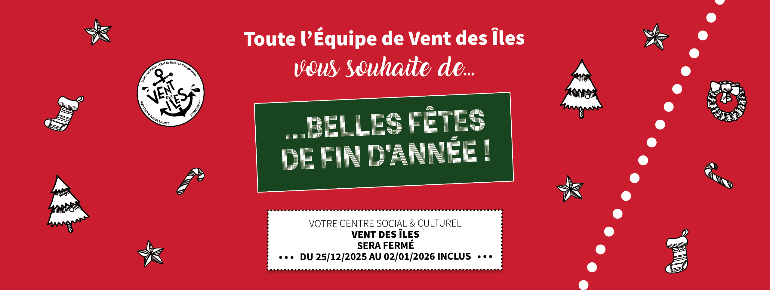 Fermeture fêtes de fin d’année – Centre Social & Culturel Vent des Îles La Rochelle Fermeture fêtes de fin d’année – Centre Social & Culturel Vent des Îles La Rochelle Le 23 décembre 2025 0 No Comments Leave a Reply Cancel ReplyNom * E-mail * Site web Enregistrer mon nom, mon e-mail et mon site dans le navigateur pour mon prochain commentaire. quatre × = 12 Δ Ce site utilise Akismet pour réduire les indésirables. En savoir plus sur la façon dont les données de vos commentaires sont traitées.